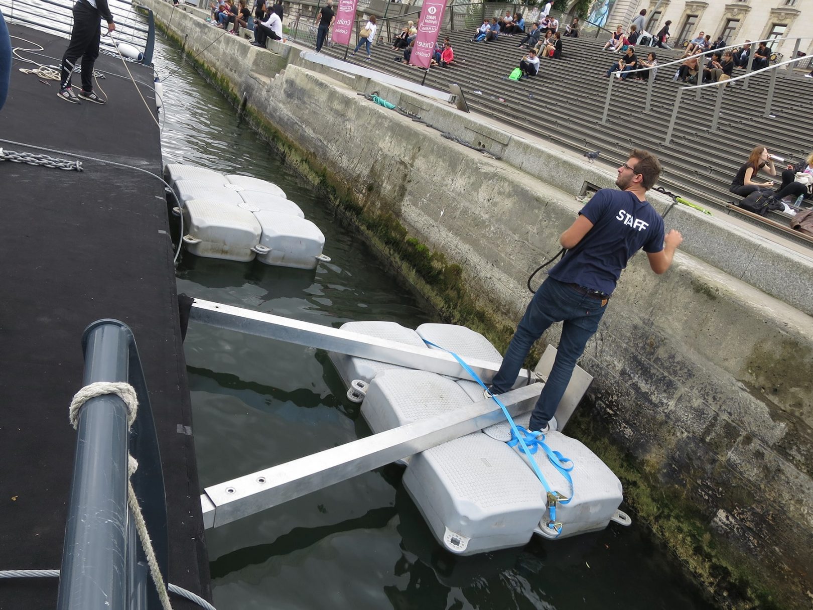 Exemple : écoires + bracon réalisés sur mesure au pied du Musée d’Orsay (Paris) pour l’amarrage du ponton et la protection du quai classé