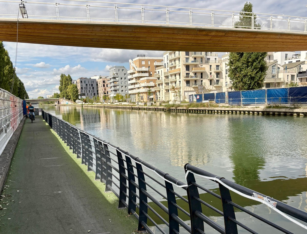 Ponton flottant de 100 m² reliant les deux rives à Bondy