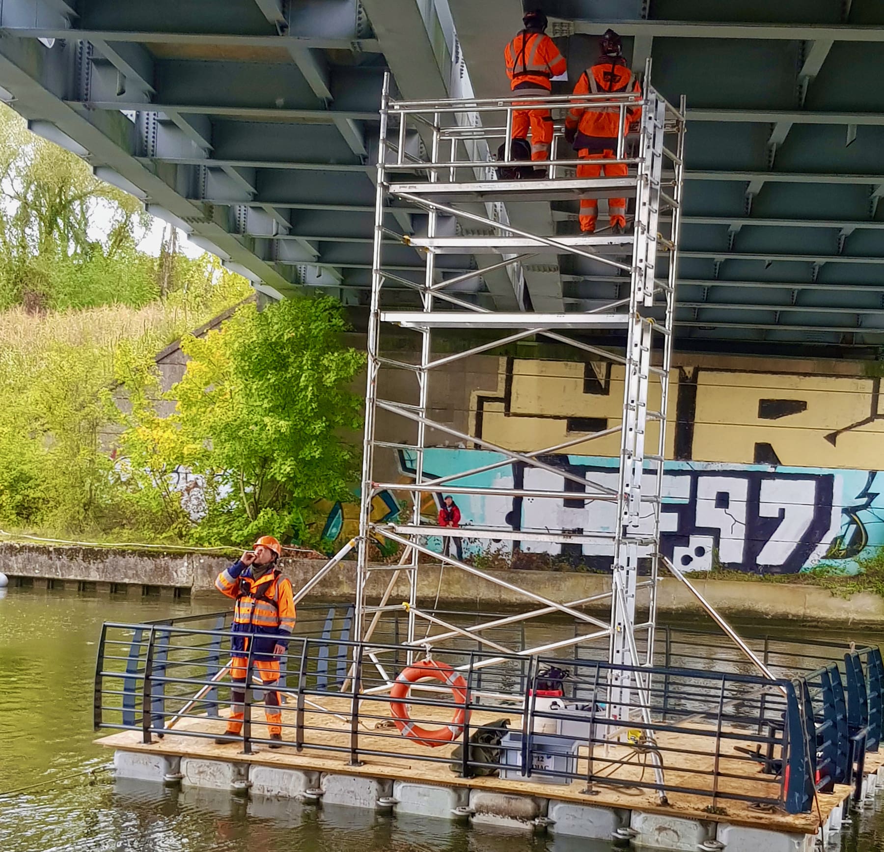 Ponton de travail avec échafaudage