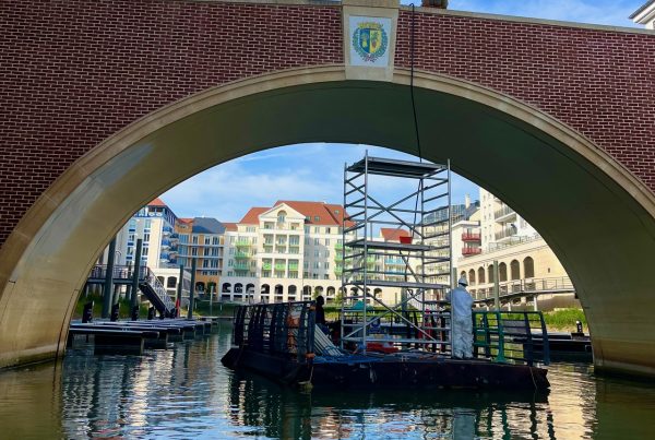 Ponton flottant équipé d’un échafaudage pour inspection de nuit