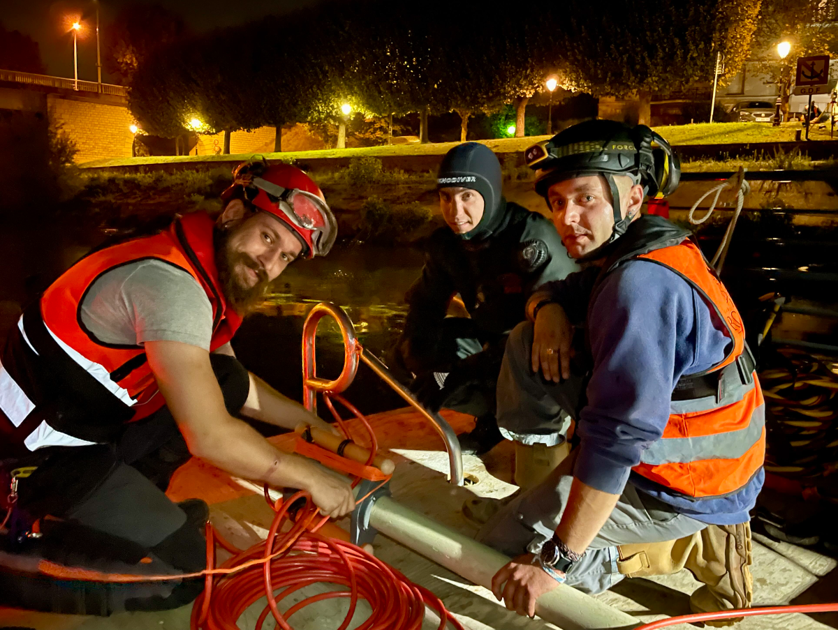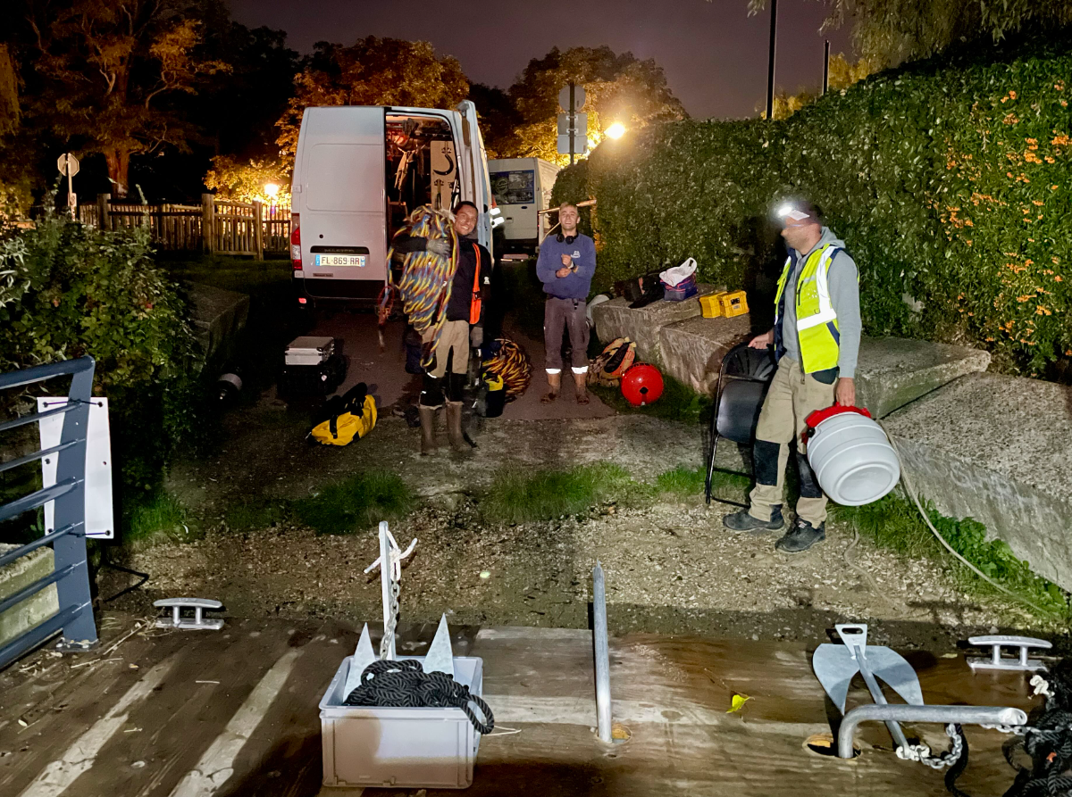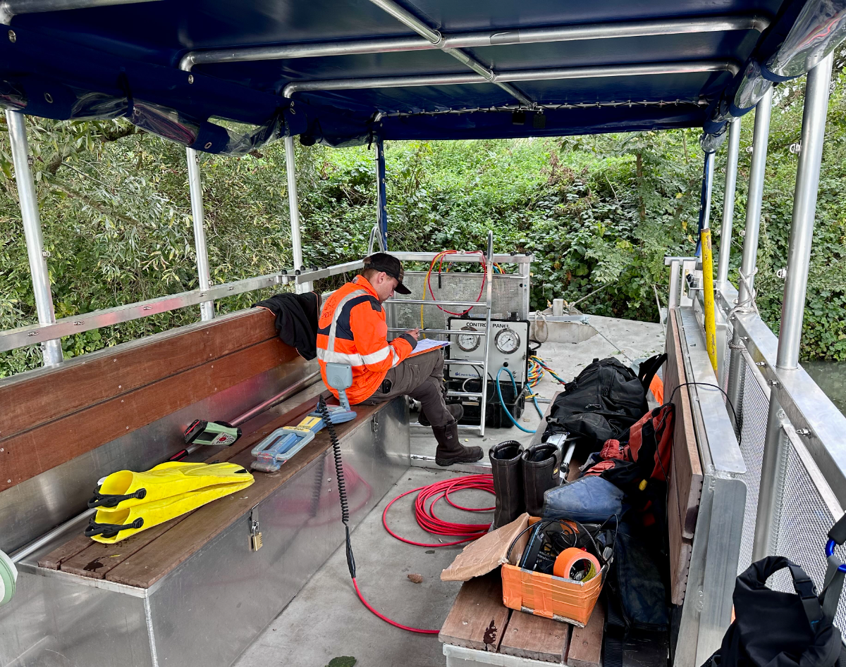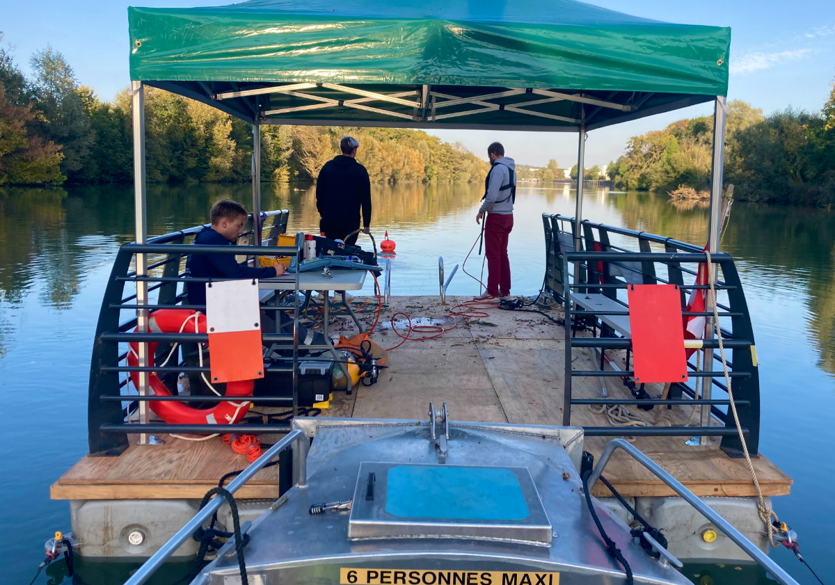 - Ponton motorisé ou amarré à un bateau pousseur pour les déplacements