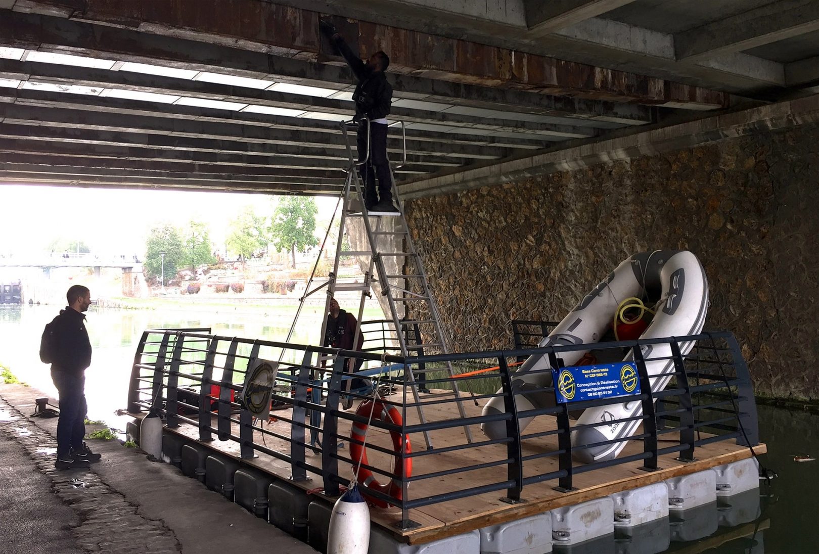 Particularité : ponton de travail équipé d’un moteur en fonction du plan d’eau et de la nature des travaux. Moteur 6 CV sans permis ou motorisation adaptée avec 1 pilote
