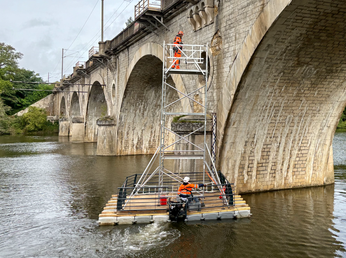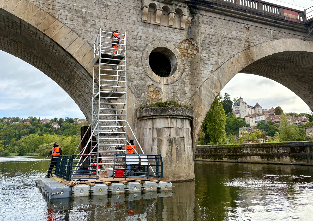 Nos pontons flottants offrent une base robuste et homologuée qui permet de travailler en toute sécurité, même dans des conditions de chantier difficiles. Adaptables à divers types de projets, nos pontons échafaudage peuvent être utilisés pour des interventions sur des canaux, lacs, fleuves et autres milieux aquatiques.