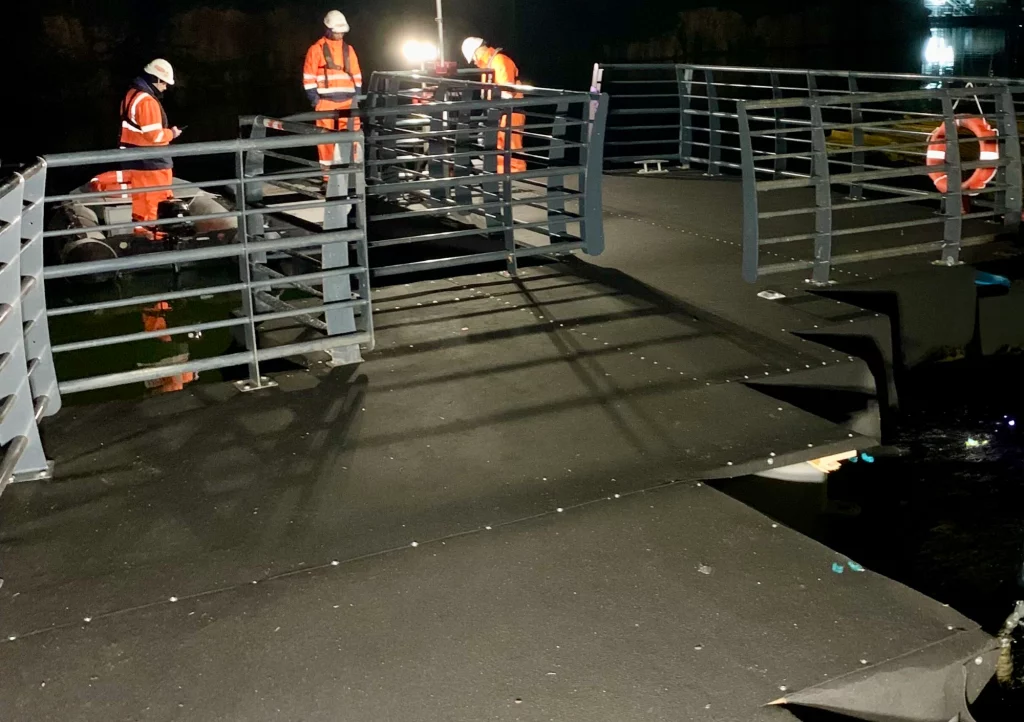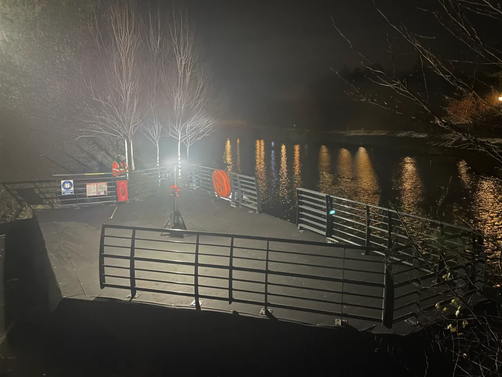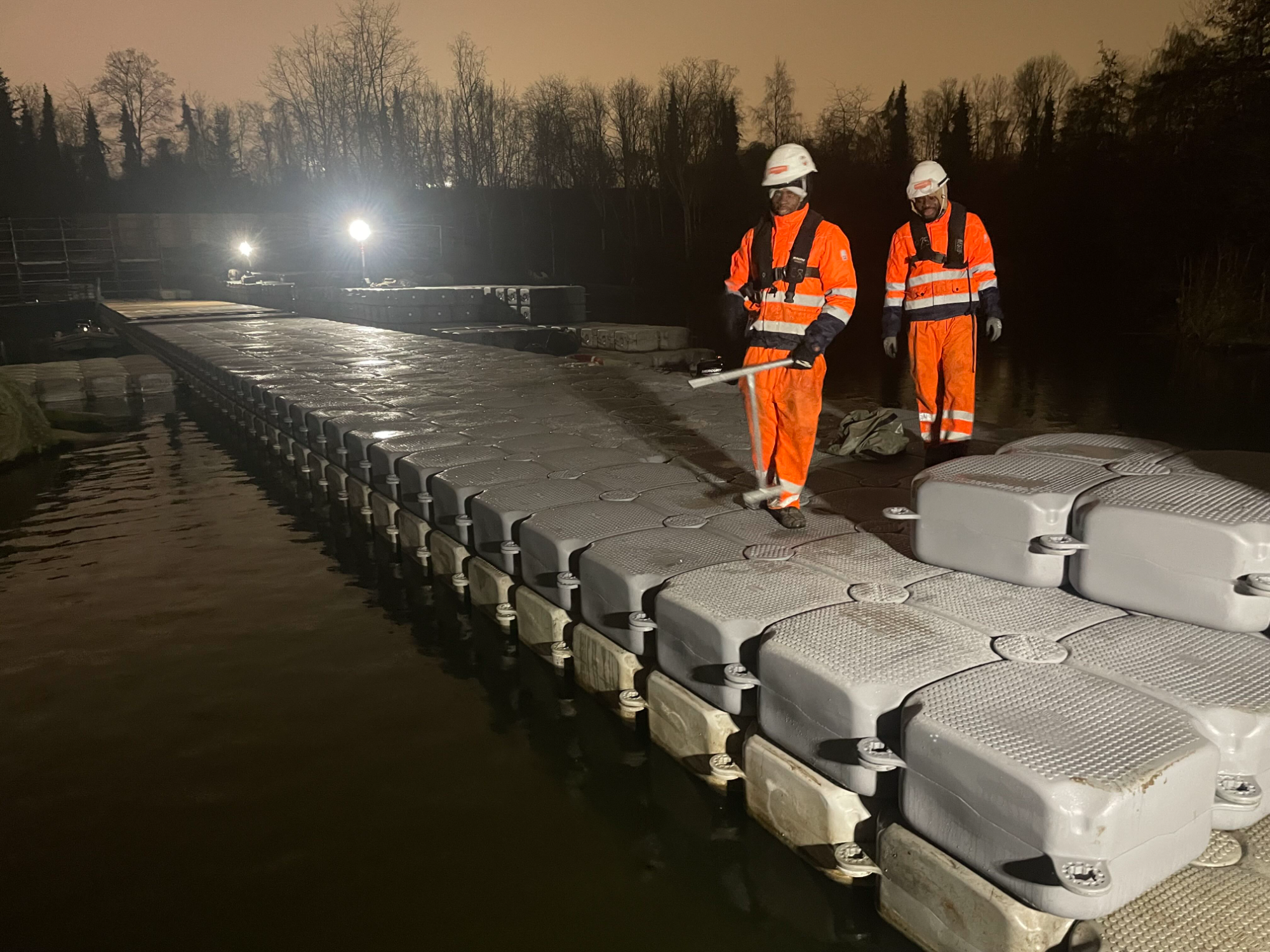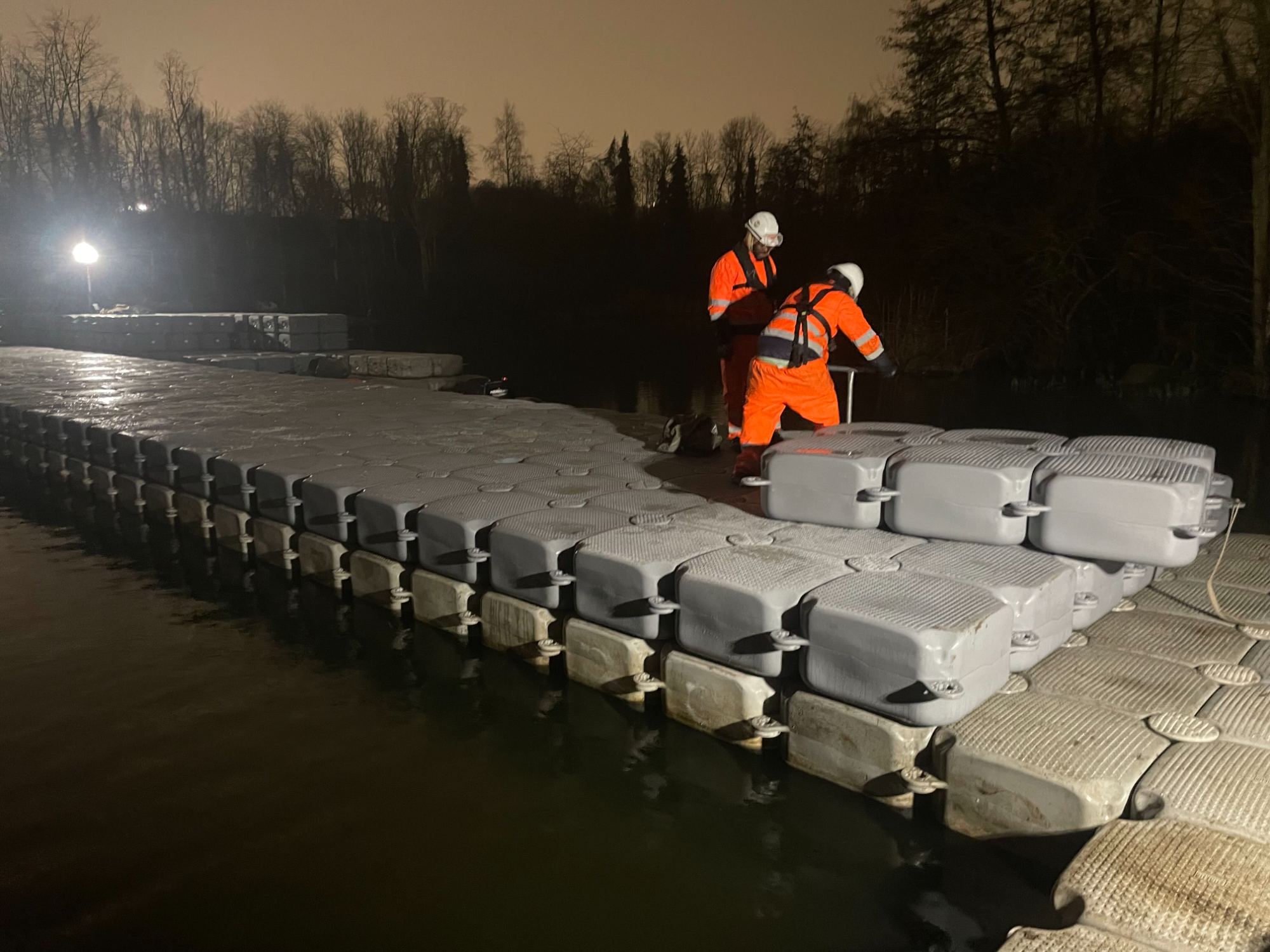Afin de répondre aux préconisations des autorités nautiques comme VNF et aux exigences ou terminatorcontraintes de nos clients, nous sommes régulièrement amenés à travailler de nuit sur l’eau.